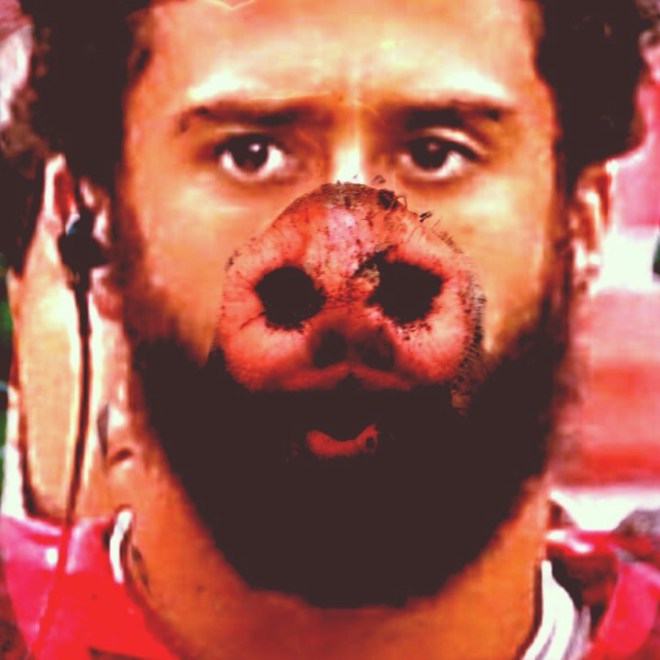 There’s a new fad on the football fields these days! Yep. Pussies are remaining seated for the National Anthem. And why are these pussies like Colin Kaepernick sitting it out like treasonous bitches? Well, it all started when some clown told a lie about a lousy thug who never said “Hands up don’t shoot!” But rather physically attacked a cop violently, who in fear for his life shot and killed the worm. This lie ignited a firestorm of deception about unfounded reports of rampant police brutality based in racism. All an absolute load of bullshit, but you can’t tell the average dimwit otherwise.It’s all an inside job in order to federalize the police and leave citizens defenseless against a tyrannical government when it all goes down.  But suckers will be suckers.